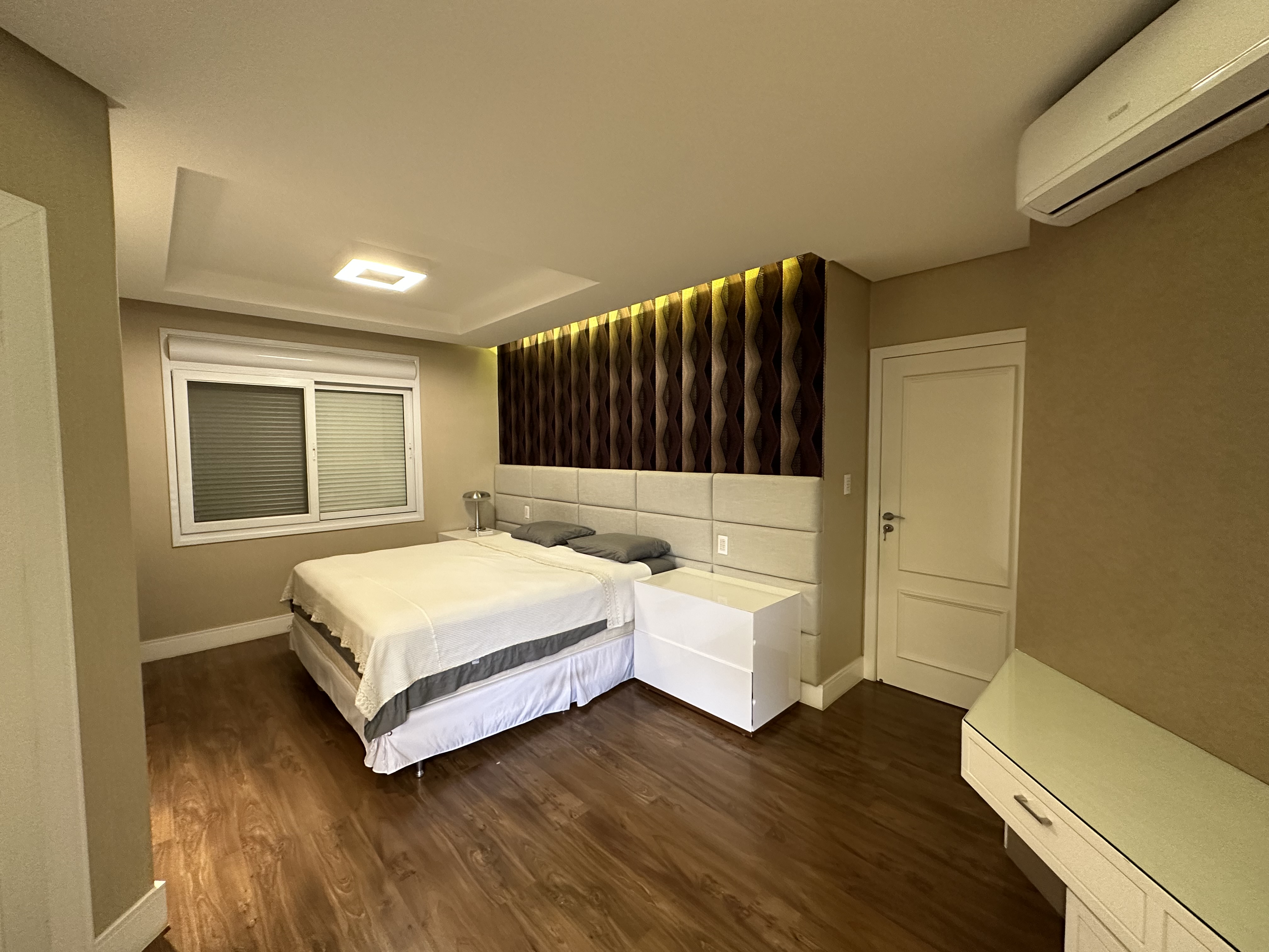 Janelas: todas as janelas dos quartos, suítes e escritório são de alumínio, motorizadas, com tela mosquiteiro e controladas pelo sistema de casa inteligente.